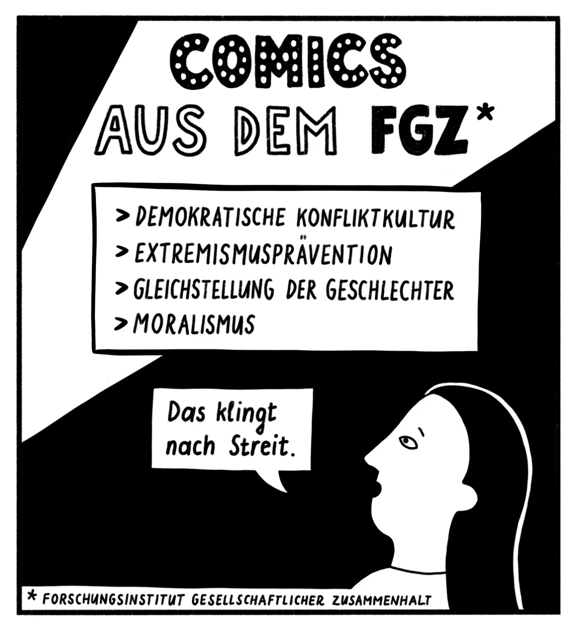 Discover the Research Institute for Social Cohesion’s (FGZ) work on the major topics of conflict in our society, packed with a punch into humorous and provocative comics by artist Pia Plankensteiner. Talk to our researchers and let us know your opinion at our interactive poster stations!