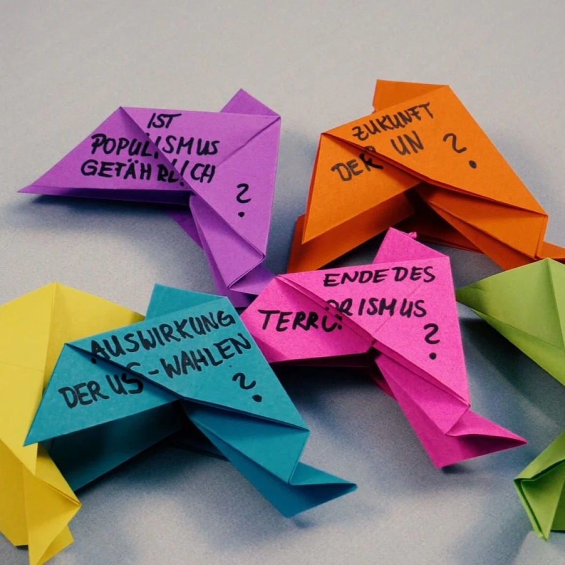 Pigeons made of colorful paper will become letter carriers for your questions and ideas about peace. Write down your thoughts and get into conversation with us. Your topics will determine our event “Frankfurt Ideas for Peace” in December. Our mailbox is already waiting.
