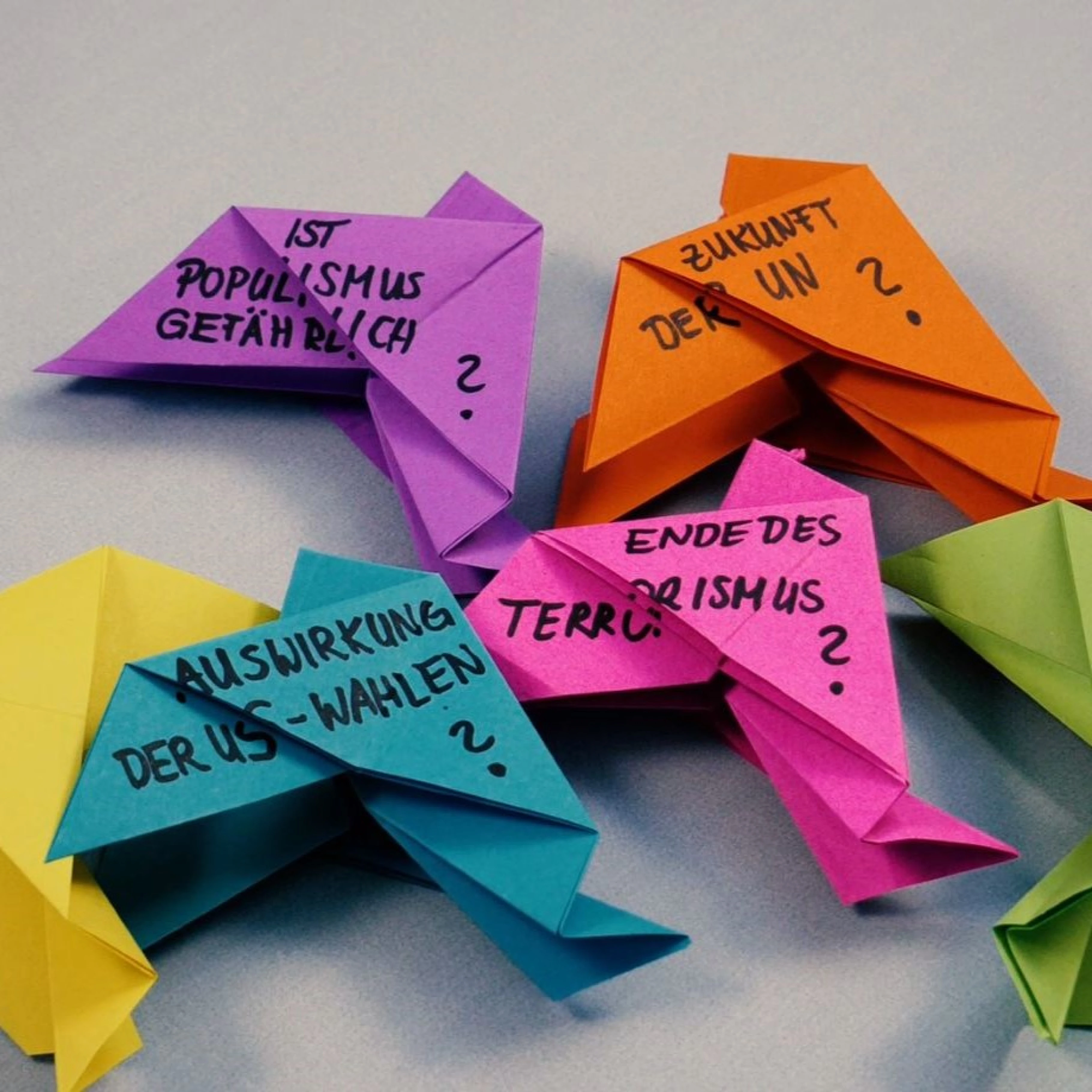 Tauben aus buntem Papier werden zu Postboten für deine & Ihre Fragen rund um das Thema Frieden. Schreibt eure Gedanken auf und kommt mit uns ins Gespräch. Eure Themen bestimmen unsere Veranstaltung "Frankfurter Ideen für den Frieden" am 10. Dezember in der Stadtbücherei Frankfurt. Unser Briefkasten wartet schon.