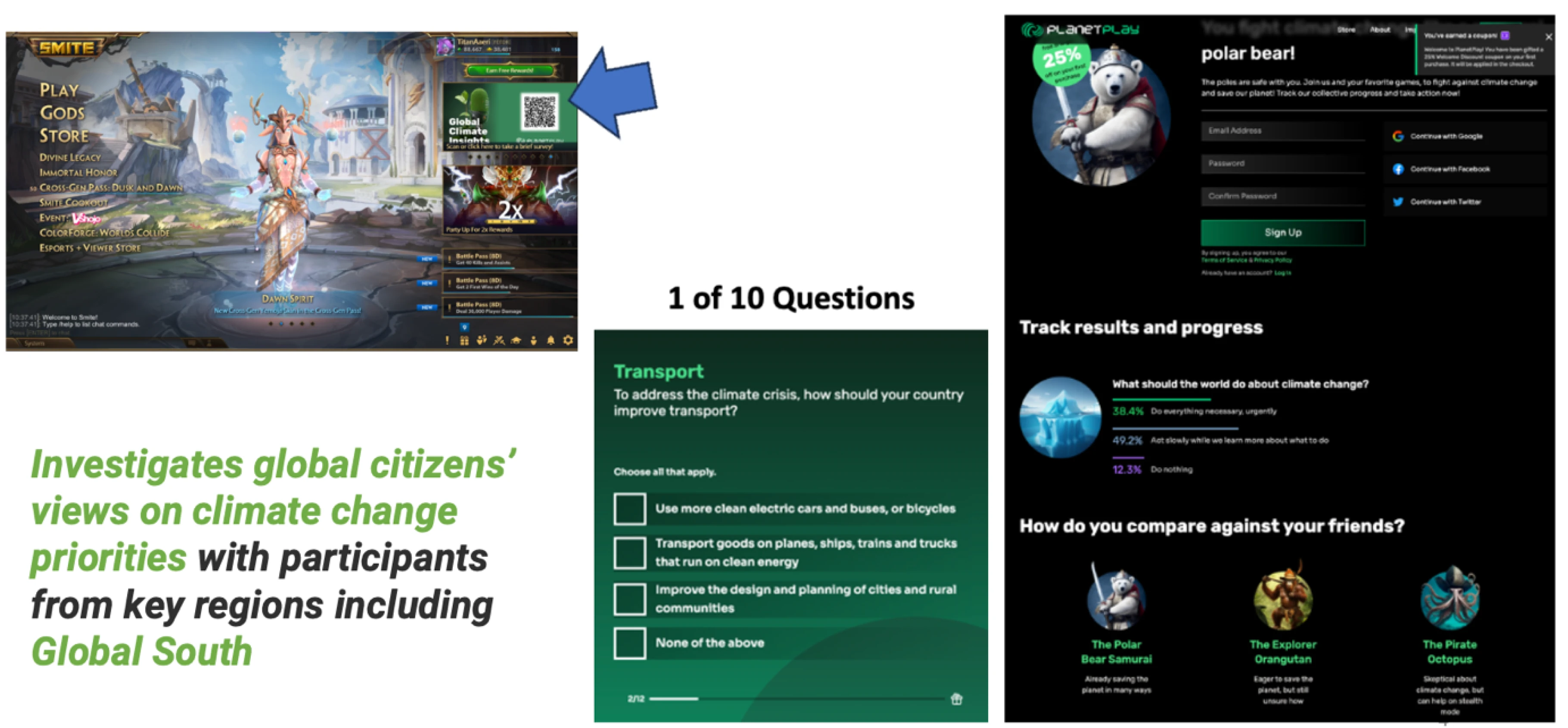 Wir zeigen zwei Spiele, ein Quiz-Spiel und ein Dilemma-Spiel, bei denen man etwas über Klimaschutz lernen kann. Die Spiele gehen aus einem Horizon-Europe-Projekt hervor, bei welchem wir mit dem United Nations Development Program zusammenarbeiten, um mit Daten die Klimapolitik zu unterstützen. Komm‘ vorbei und probier‘ die Spiele aus!